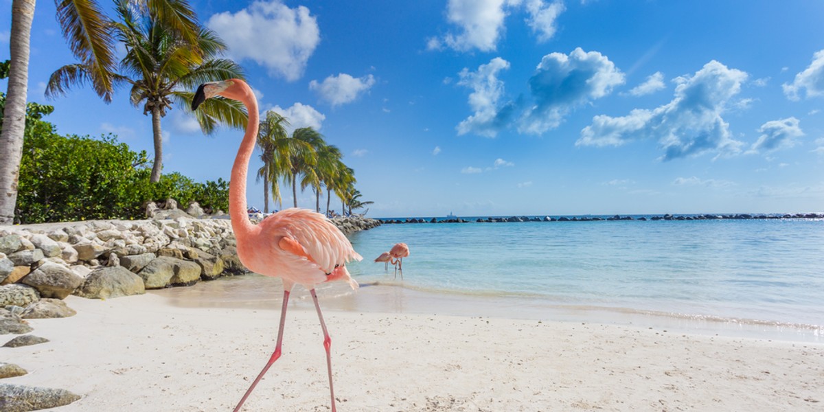 "Wyspa Odrodzenia: synne flamingi niedaleko Aruby Podre, , , , , , , , , , , , , , , , "
