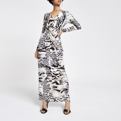 White Floral Tie Back Beach Dress River Island